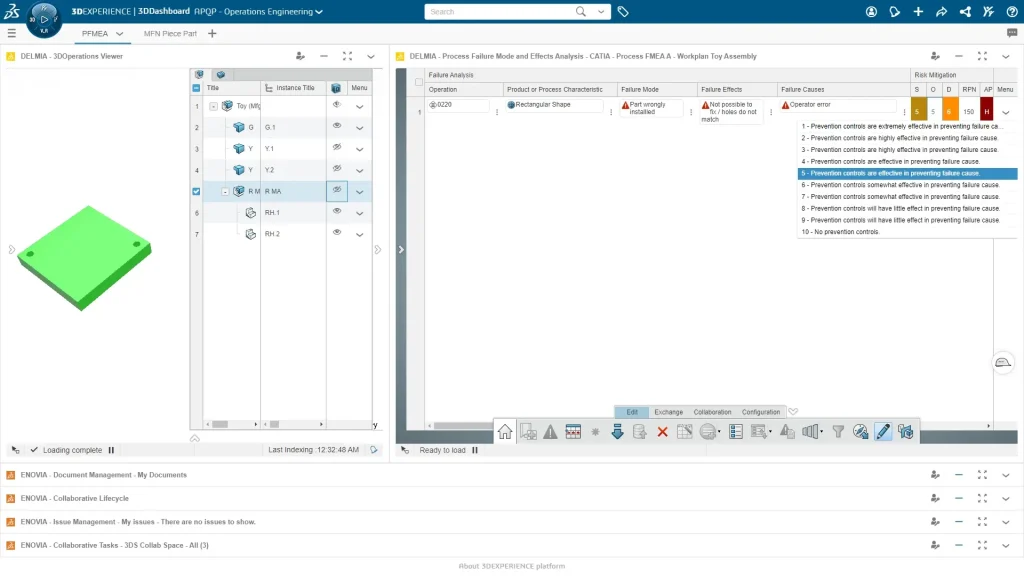借助DELMIA 3DEXPERIENCE流程质量分析师 (PQA-OC) 角色,您可以应用制造质量和控制工程的行业标准故障模式和影响分析 (FMEA) 来管理和解决潜在问题,防止问题发生。