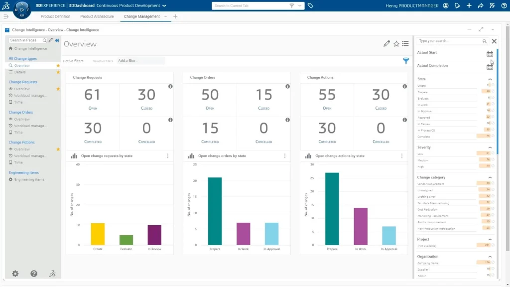 产品工程专家通过交互式仪表板实现变更分析,并使用基于模板的按需报告生成来确保就准确的工程数据进行通信。