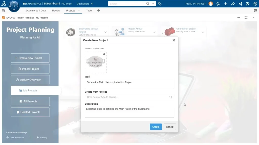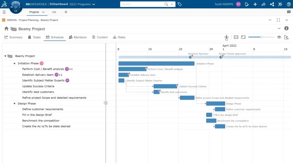 ENOVIA 3DEXPERIENCE 项目规划师 (XPP-OC) 角色提供简单且辅助的、基于团队的迭代规划、执行和监控。项目规划人员可以定义项目范围、依赖关系和里程碑。