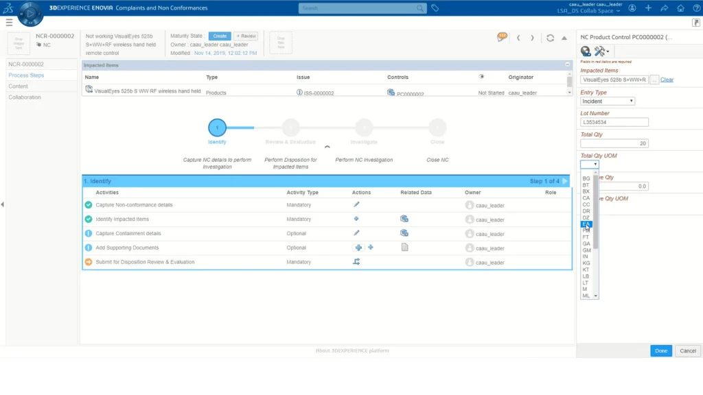 ENOVIA 3DEXPERIENCE 质量保证经理 (QUM) 角色是一个全面的跨行业质量管理解决方案,可将质量和合规性直接嵌入到 3DEXPERIENCE 平台上的产品开发流程中。