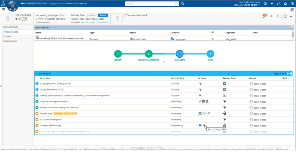 管理CAPA管理,以标准化和协调产品开发领域的质量活动,消除孤岛并整合基于事实的决策。