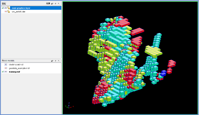 改进了块体模型的加载和显示,现在可以直接打开多个块体模型用于数据验证。用户可以在图形窗口中加载多个块模型并控制其可见性。同时在切换到另一个模型时,其它所有块模型的操作仍保留在当前模型中。