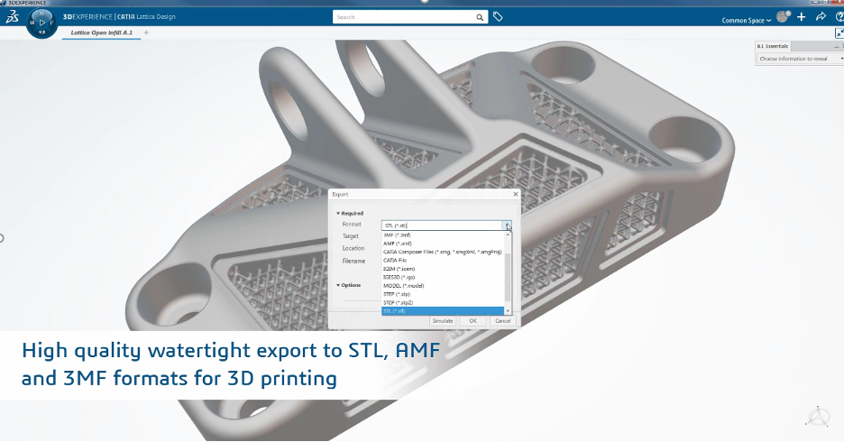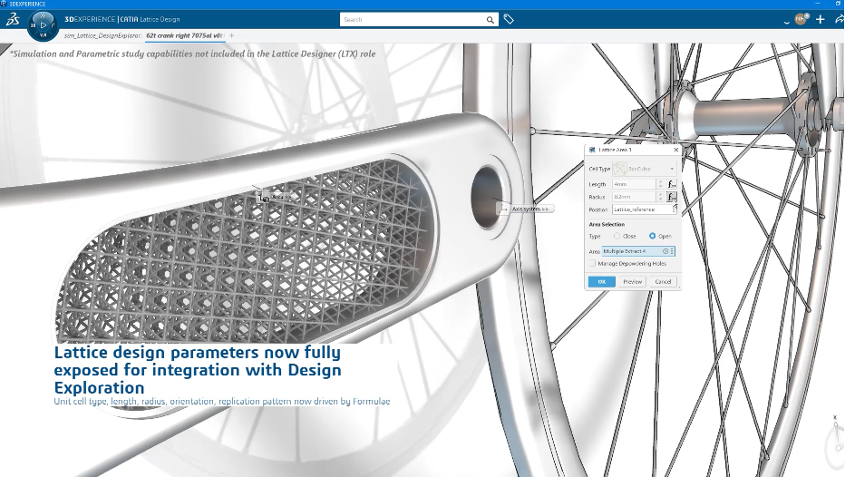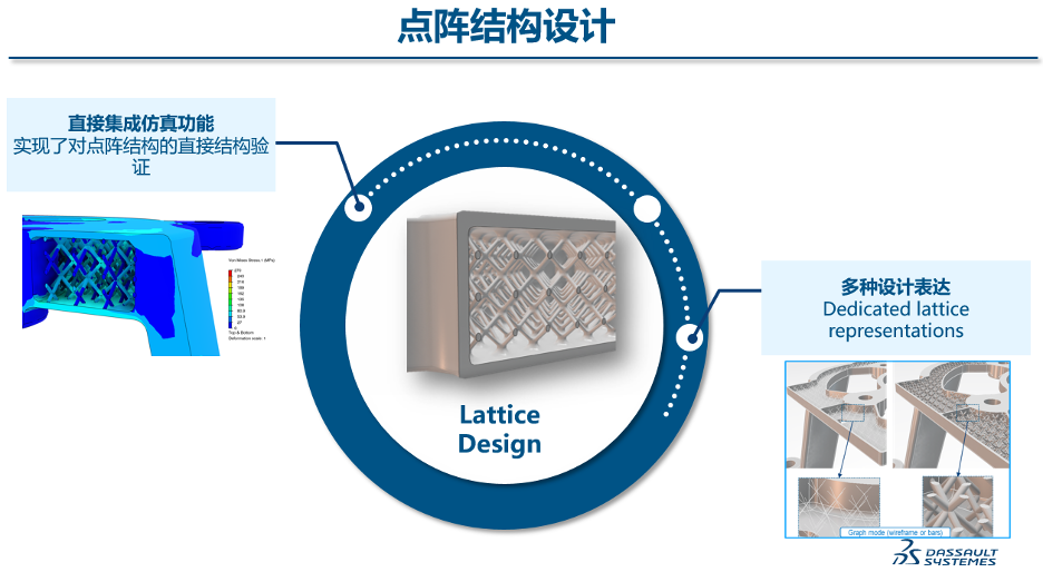 达索系统针对增材制造各个环节在每一个版本中都有针对性的功能提升,目前针对创成式设计有GDE、SGD模块,在2022x版本中,为了提升创成式设计端的功能,发布了新的角色结构创成式优化工程师(OPZ),可以实现拓扑优化、形貌优化、参数优化等,其次针对设计端普遍采用的设计方法就是点阵结构(lattice)设计也有了全新的功能提升。