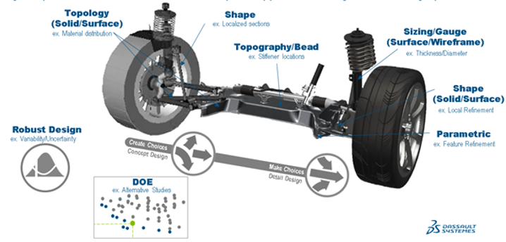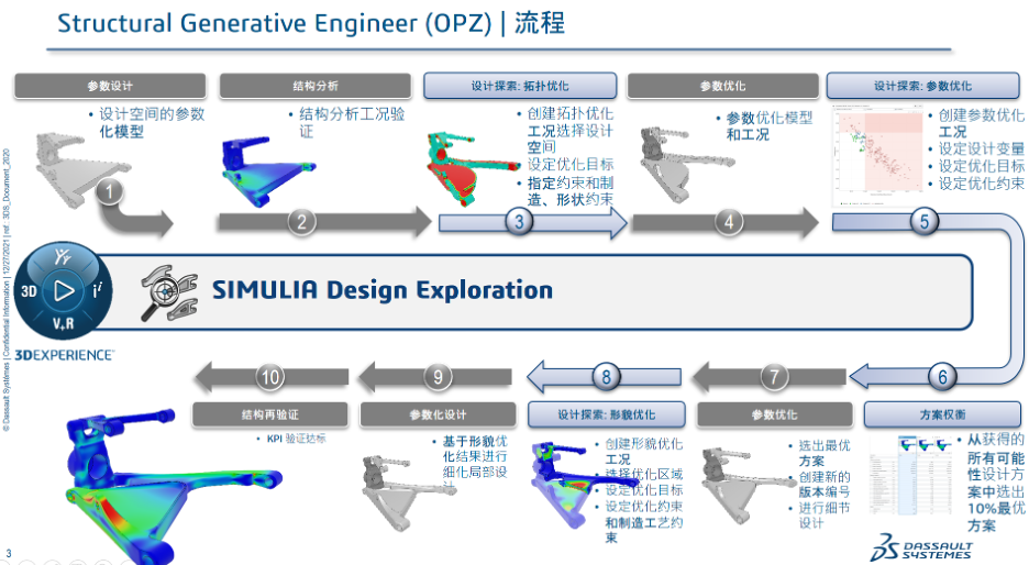 利用OPZ可以实现设计从设计空间利用拓扑优化功能获得的概念设计,再利用参数优化功能和DOE实验设计实现设计可能性方案探索和优化,获得最优设计,再利用形貌优化获得最优化外形,从而达到产品性能最优化设计。