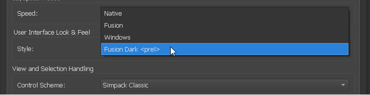 通过在Options ->Graphics对话框中选择“Fusion Dark <prel>” 选项进行设置。