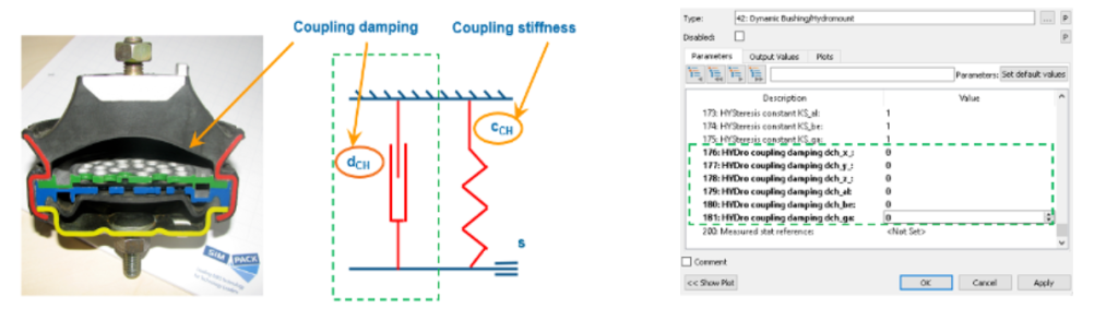 FE42动态衬套在现有的耦合刚度的基础上增加了附加阻尼,进一步提高了模型的真实性。