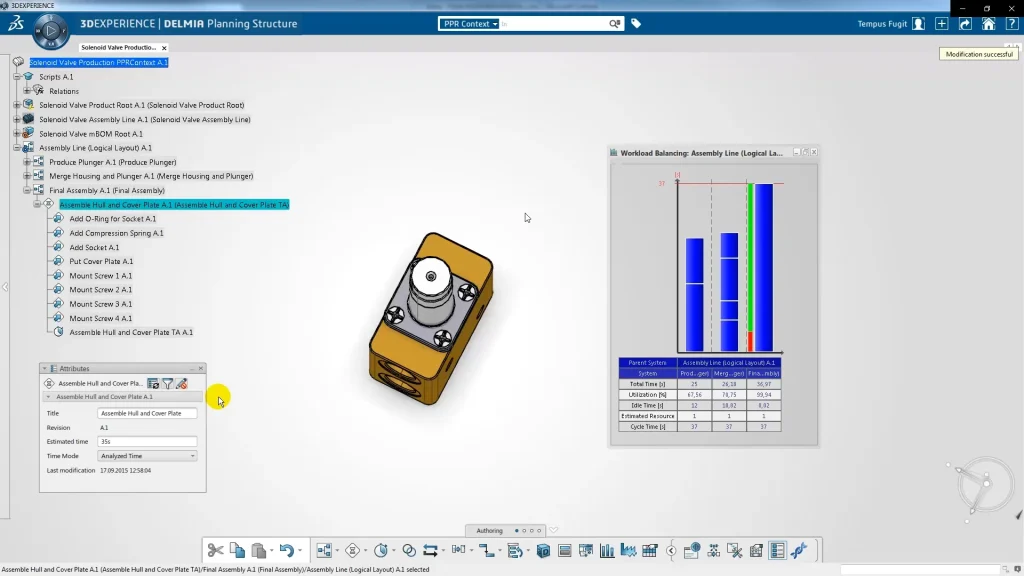 TSX 还提供了工艺计划(工作计划、系统、操作)的创作功能,这些功能与制造项目结构 (MBOM) 和平衡操作相关联。此外,用户可以在工艺计划中查看虚拟构建,以检查分析的持续时间和平衡操作对构建的影响,尤其是在操作顺序发生变化时。