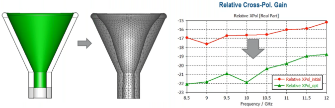 优化案例:异形光滑壁喇叭天线重量轻,比波纹喇叭更容易制造。通过对内壁进行形貌设计,可以获得一定的远场性能。