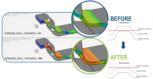 增强起筋优化功能。在起筋优化的设计空间中,干涉检查时,考虑壳体厚度和偏移量。