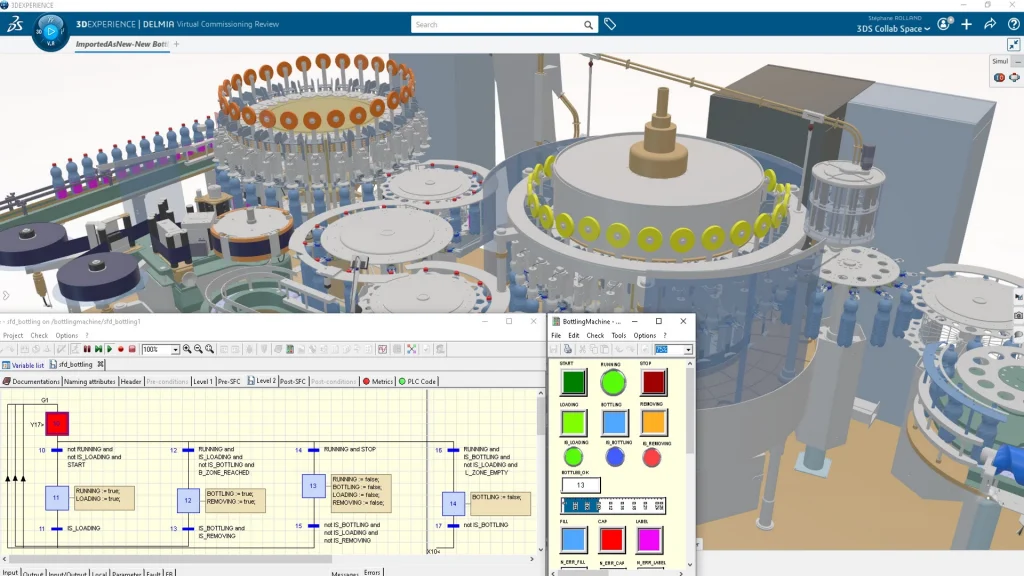 虚拟调试分析师 (VCA) 提供沉浸式 3D 体验,以虚拟方式验证工厂环境中机器的 PLC 程序。VCA 提供的连接器可与 CATIA ControlBuild 紧密集成,用户可以在其中开发、集成和验证工业自动化控制系统。