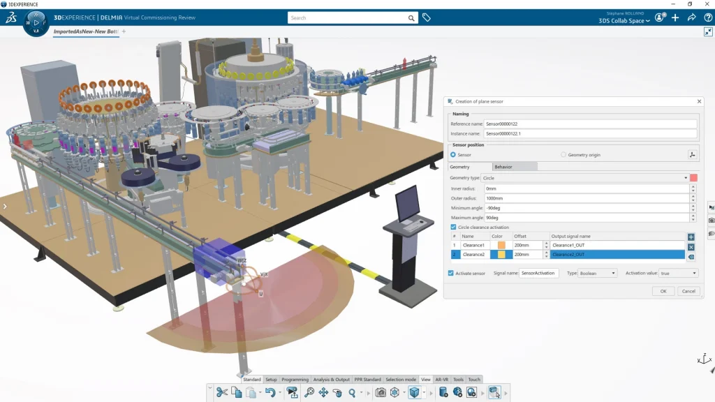 DELMIA 3DEXPERIENCE机器人虚拟调试分析师 (RVN) 角色支持根据预定义的 3D 虚拟孪生执行虚拟调试场景。