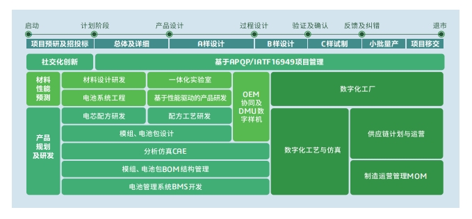- 数字化电池研发帮助企业打造流程化、规范化的产品过程管理,将主机厂和企业的研发质量体系通过数字化的方式落地到系统中,建立符合APQP质量体系要求的高效协同研发体系